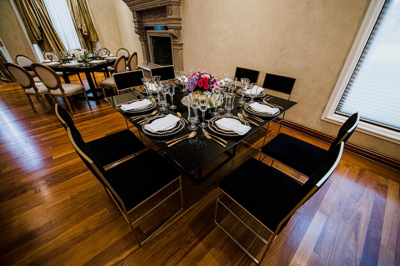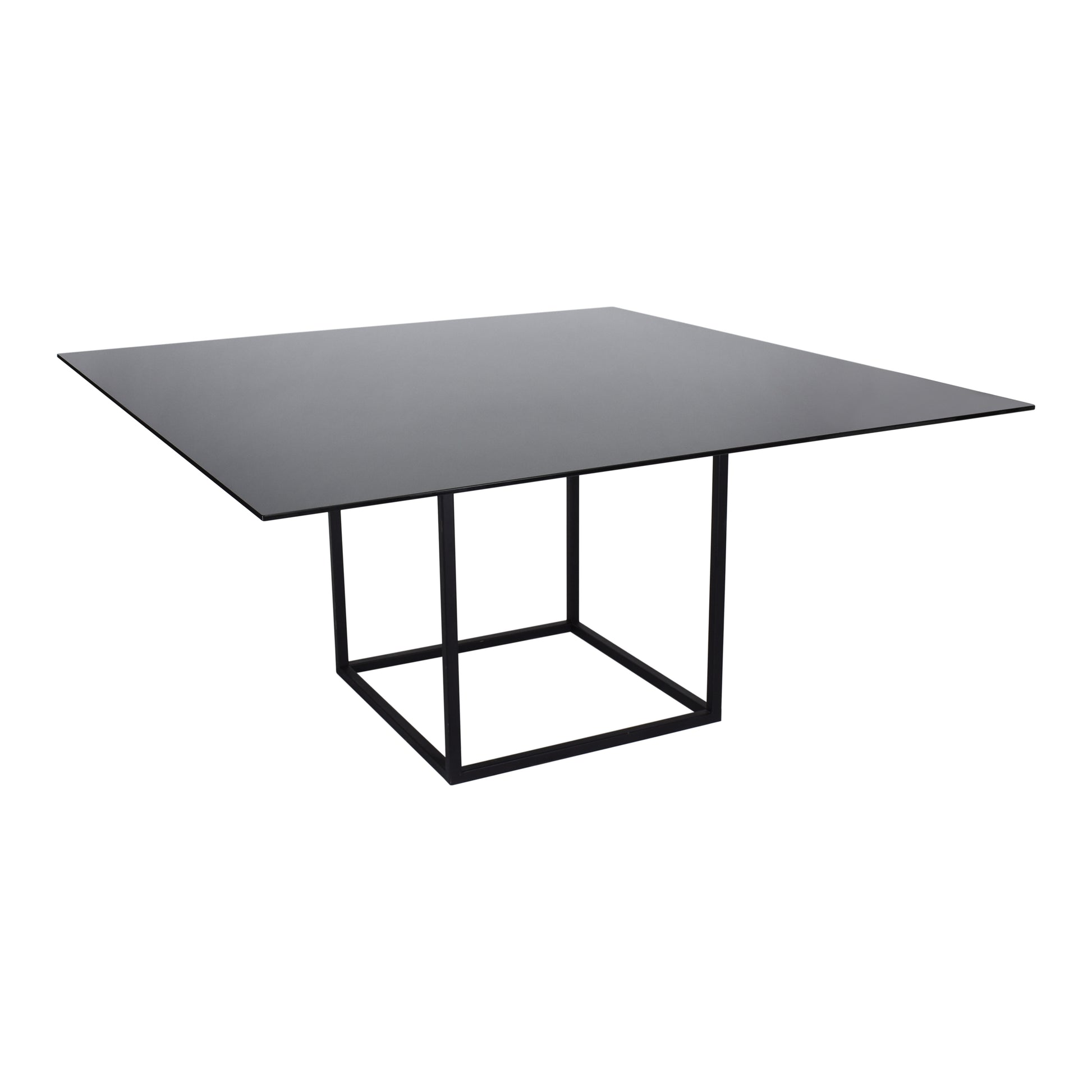 Mesa cuadrada con base cubo herrería negro y cubierta negra de vidrio