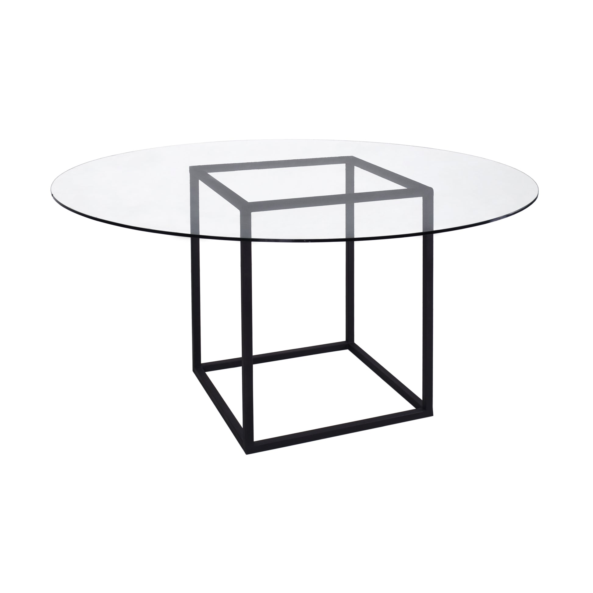Mesa cubo herrería negro y cubierta redonda de vidrio