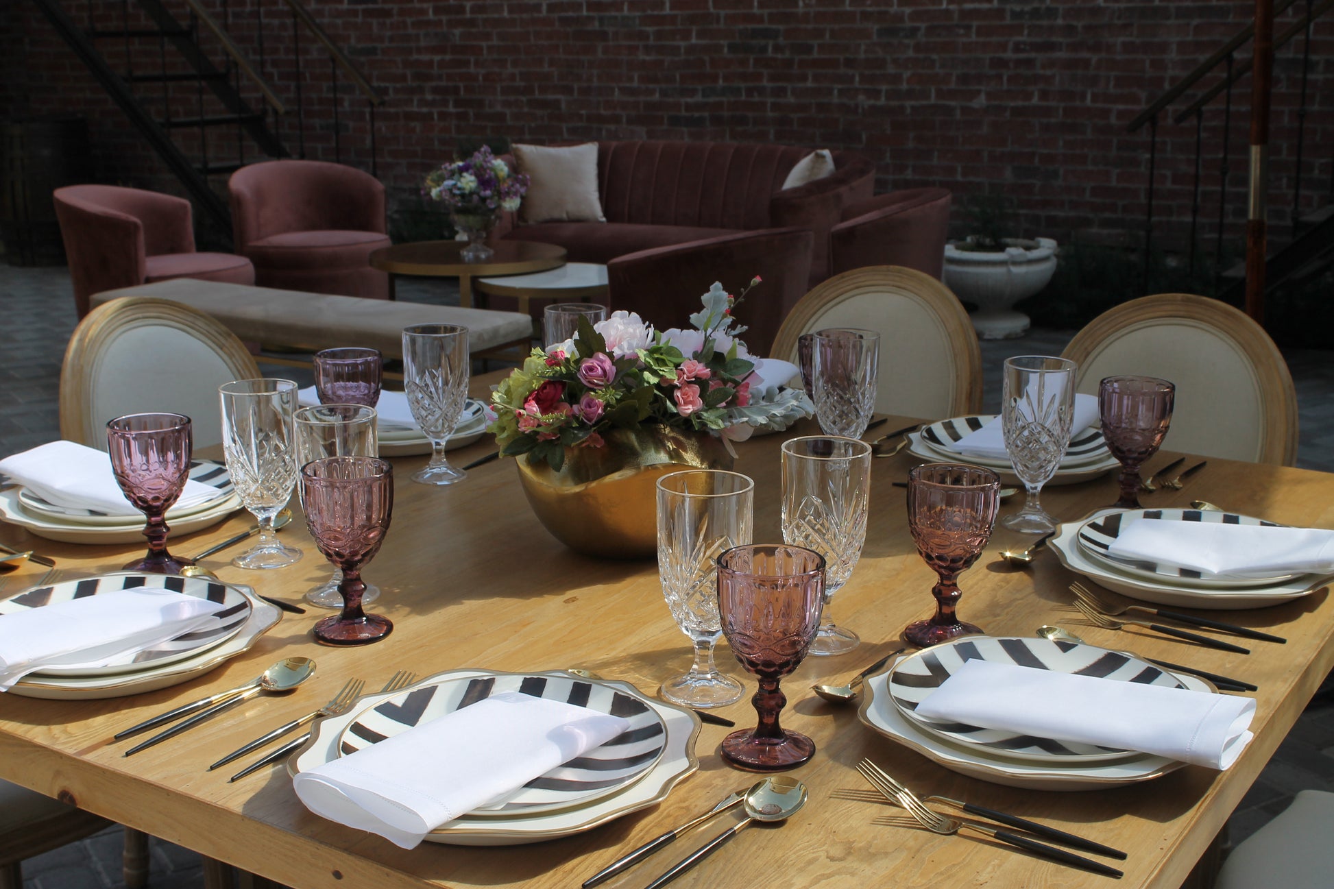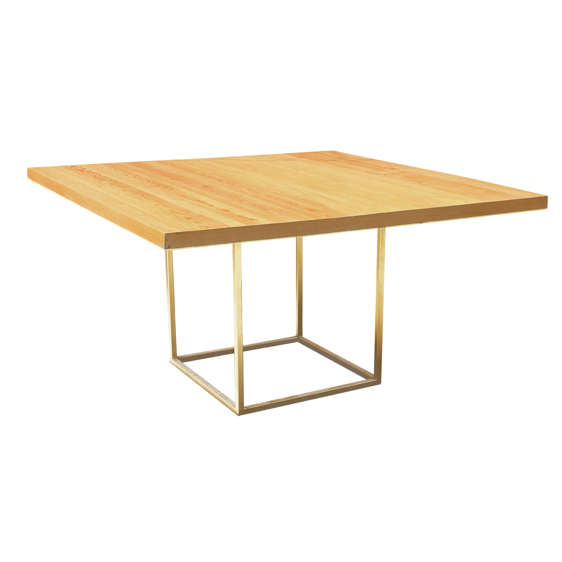 Mesa cuadrada con base de herrería dorada y cubierta de madera cuadrada