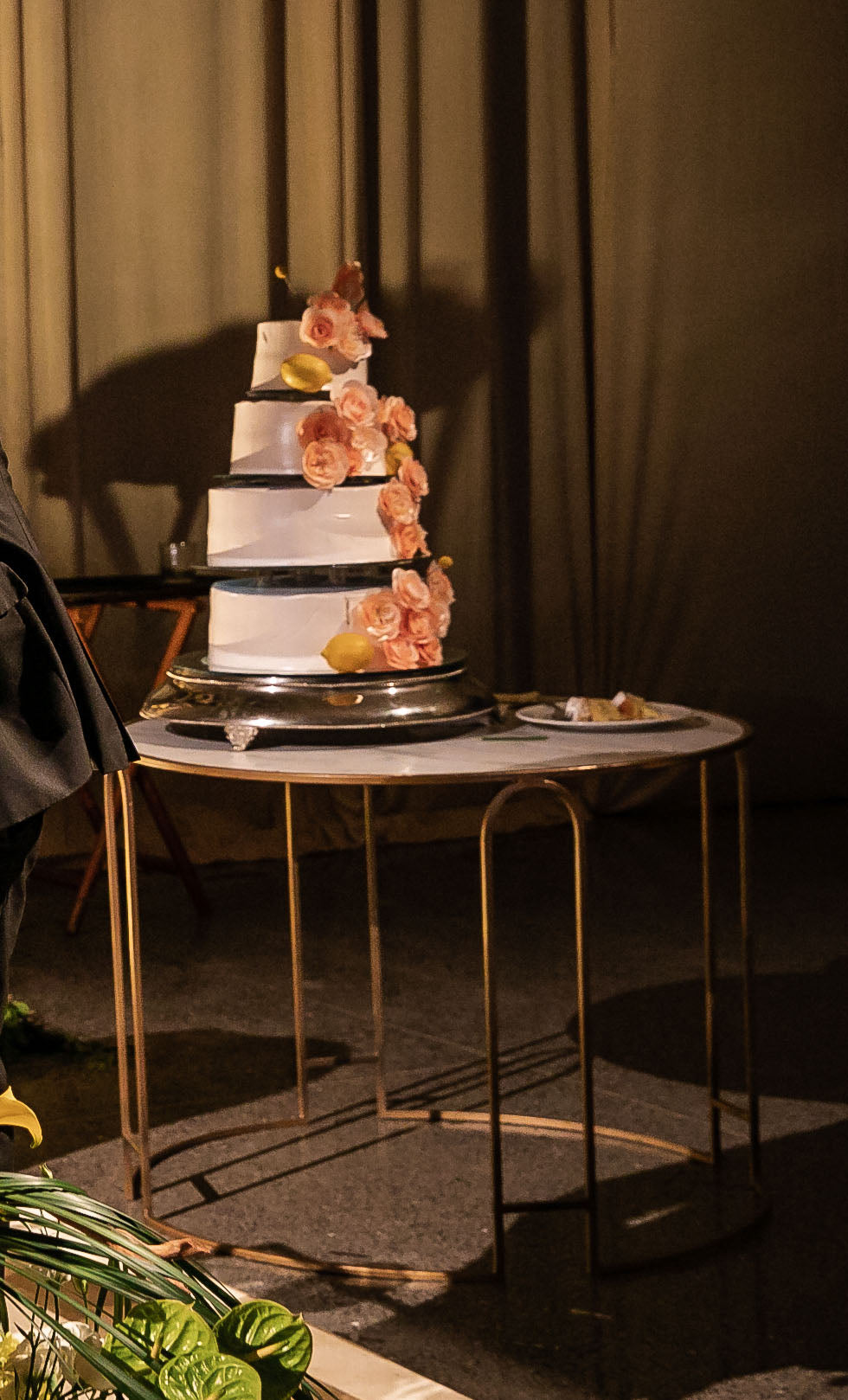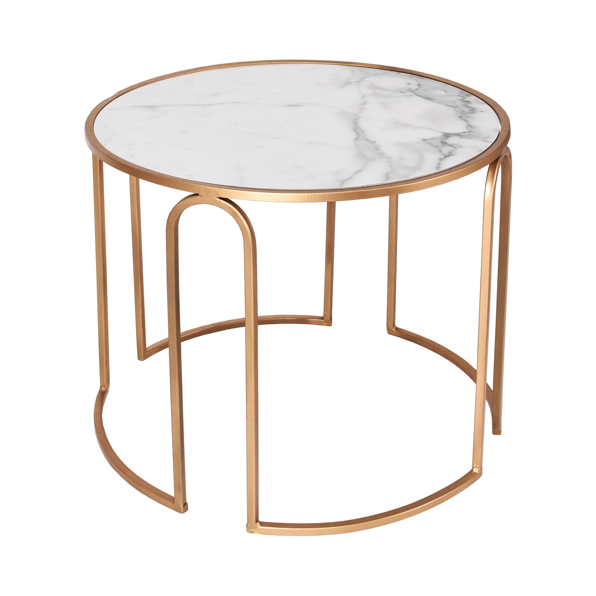 Mesa con base de herrería dorada y cubierta calacata