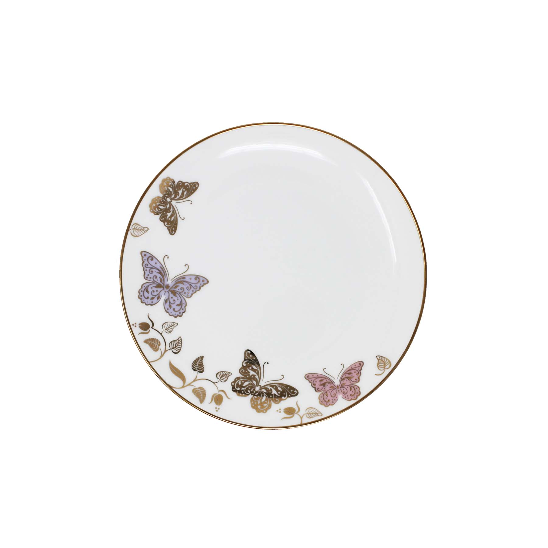 *Plato blanco con estampado de mariposas