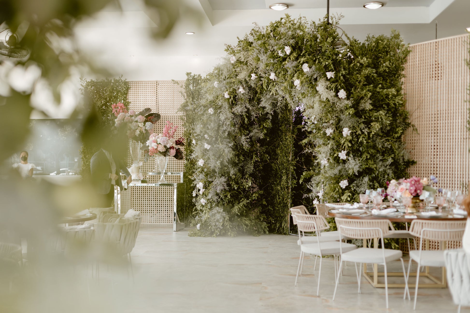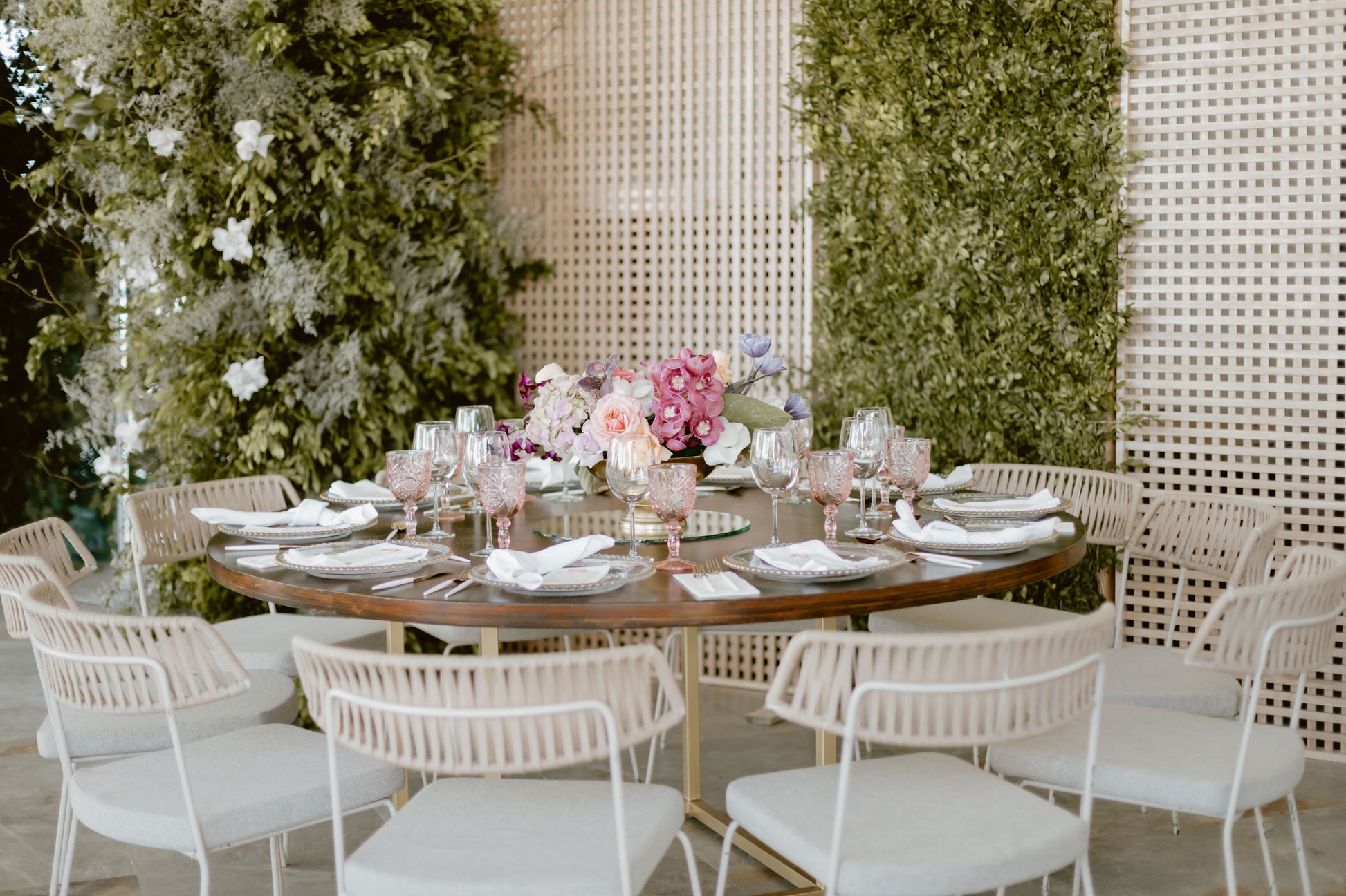 Silla de herrería beige con tejido café y asiento tapizado beige