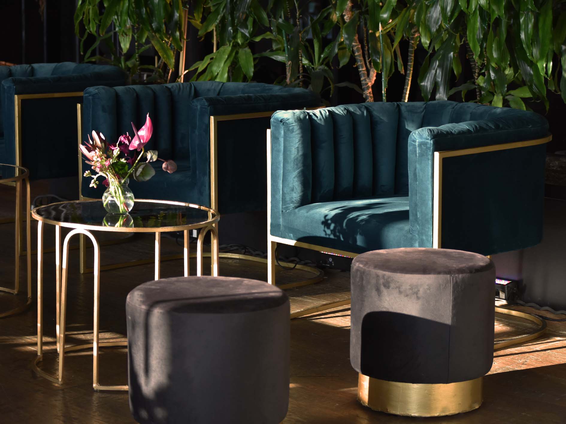 Sillón en 4 tonos velvet con herrería dorada