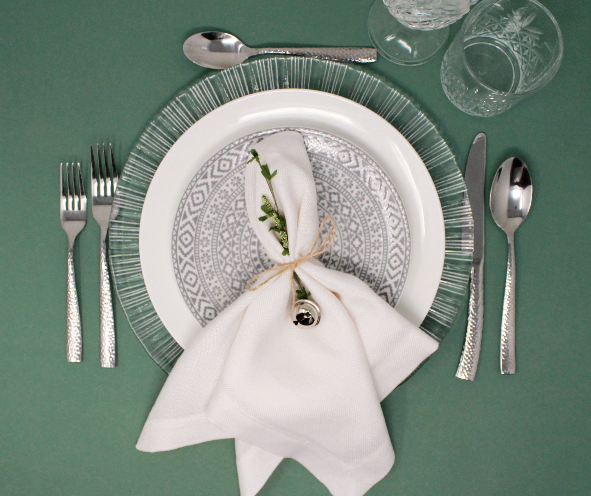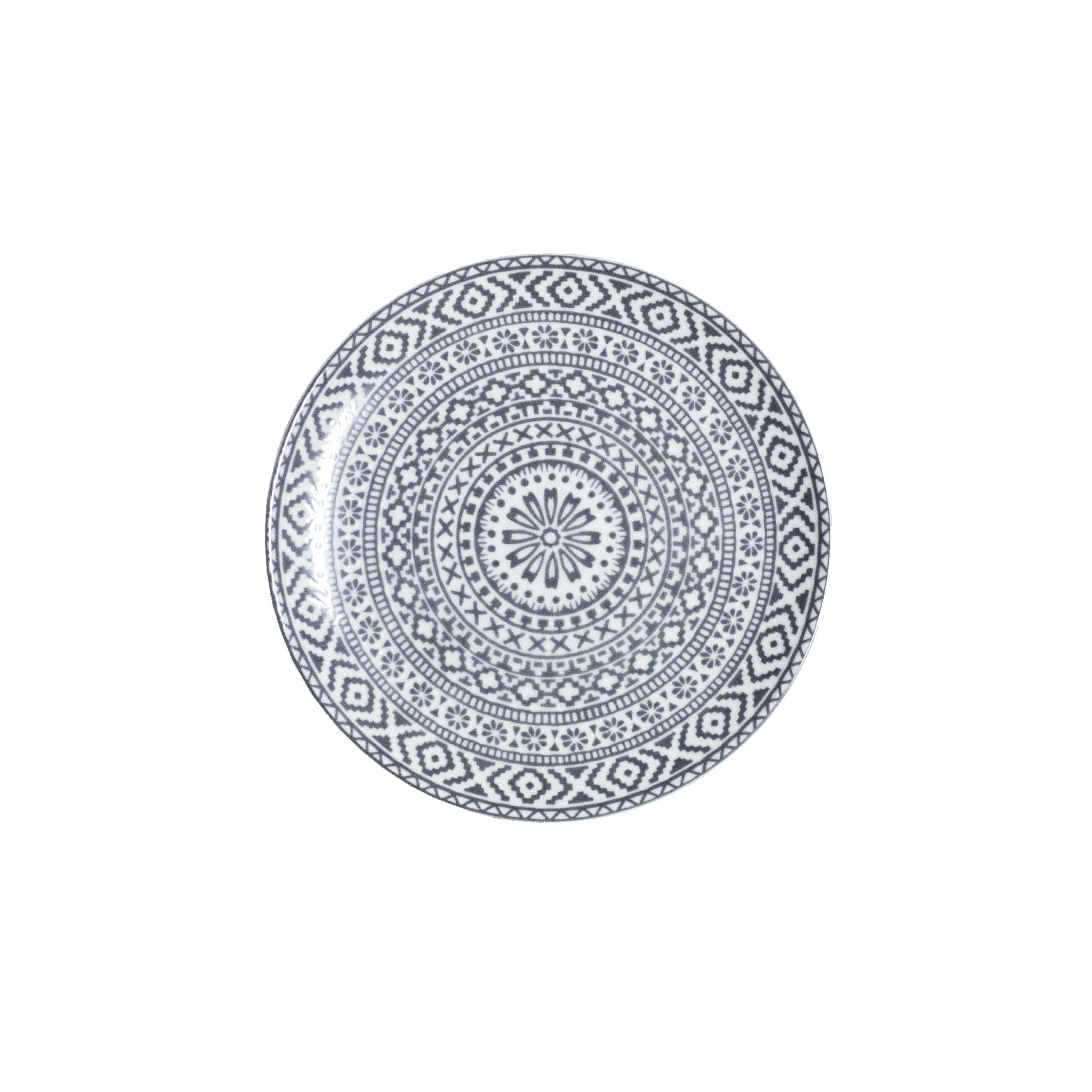 *Plato estampado blanco y azul grisáceo