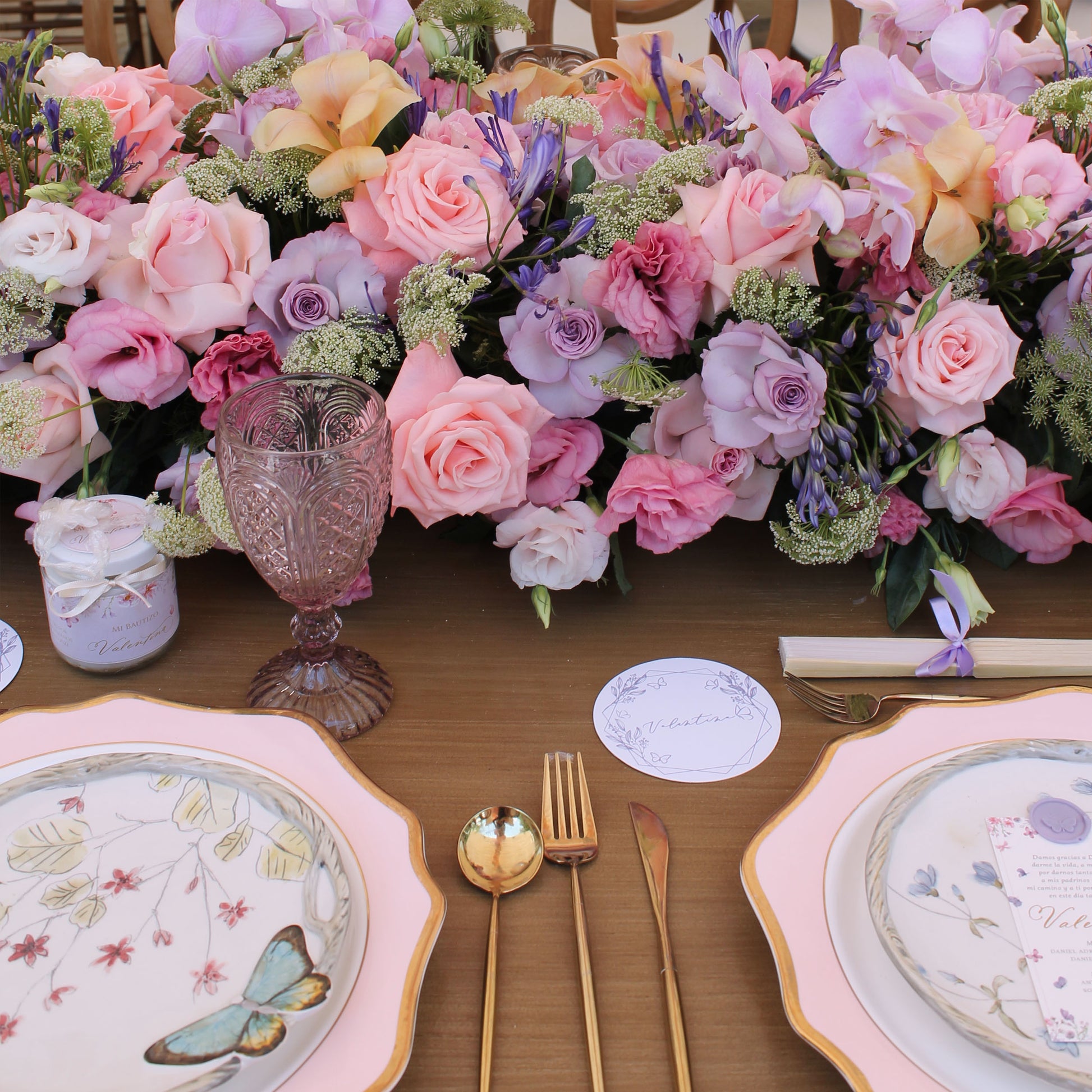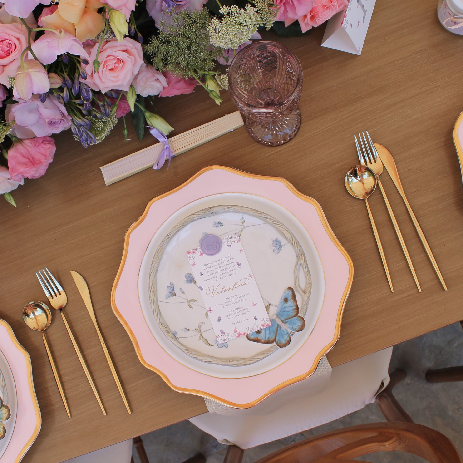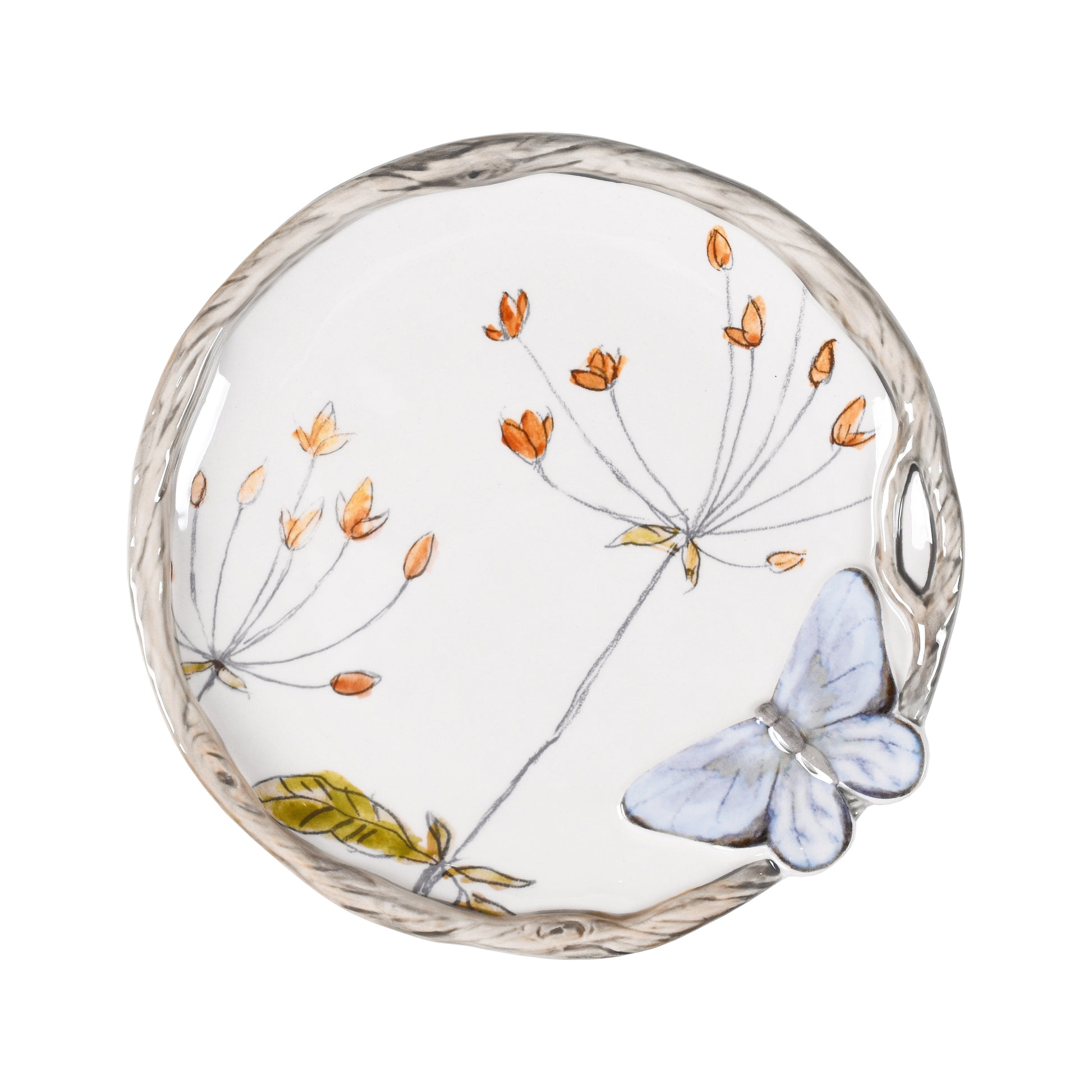 *Plato con estampado floral y mariposa