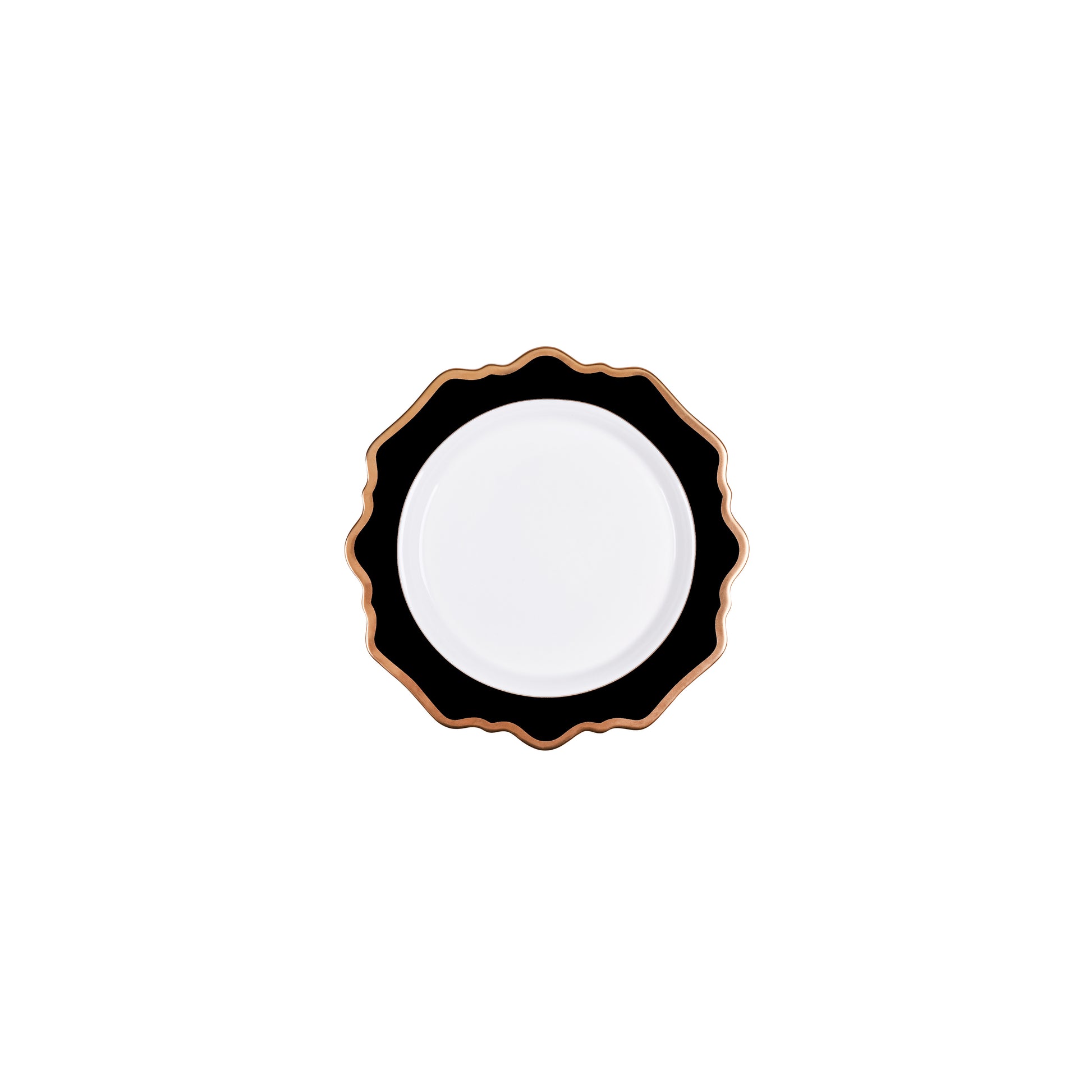 *Plato color negro con borde dorado e interior blanco