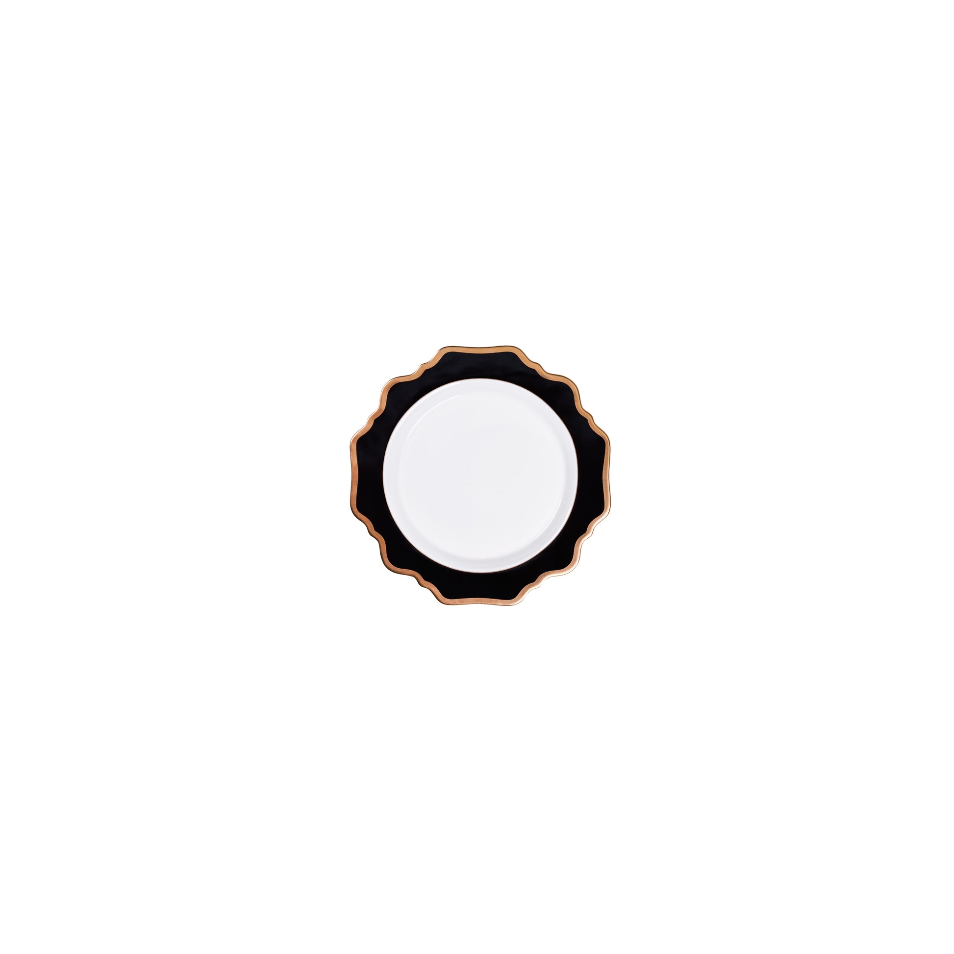 *Plato color negro con borde dorado e interior blanco